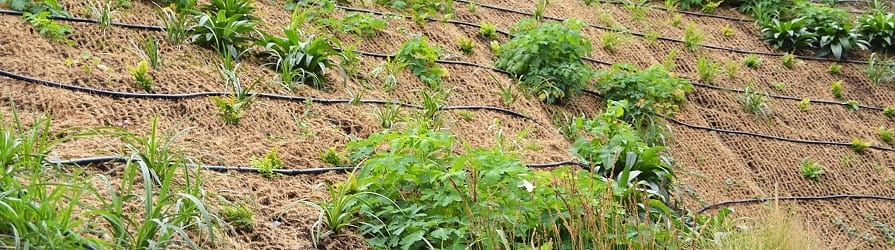 Na bardziej stromych zboczach częściej stosuje się trwałe geomaty z tworzywa sztucznego, które są lepsze od geowłókniny na skarpy