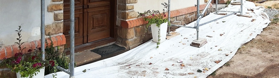 Geowłóknina jako ochrona bruku betonowego podczas prac budowlanych na elewacji domu